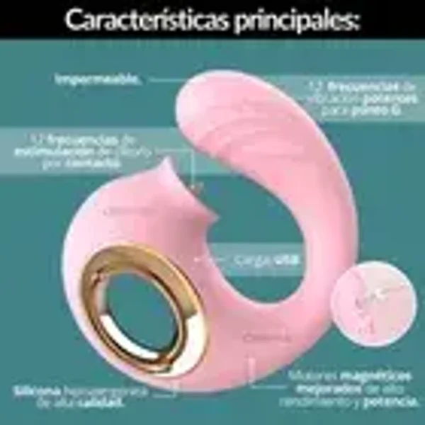 Este innovador juguete combina succión y vibración para una doble estimulación simultánea del clítoris y el punto G. Su diseño curvo permite que se adapte perfectamente al interior de la vagina, mientras su cabeza inflada intensifica el placer al estimular directamente el punto G. La magia de este vibrador reside en su capacidad de ofrecer 12 frecuencias de estimulación mediante contacto directo con el clítoris, donde una lengua vibradora simula movimientos excitantes y precisos. A la vez, puedes explorar 12 vibraciones distintas para el punto G, cuenta con motores independientes que permiten controlar las funciones por separado. Fabricado con silicona médica hipoalergénica de la más alta calidad, es ultra potente, suave al tacto y completamente seguro para tu cuerpo. Regálate la oportunidad de disfrutar una estimulación intensa.